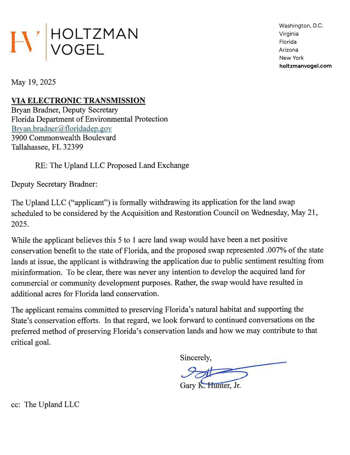 On Monday, May 19, The Upland LLC officially withdrew its application for the land swap.